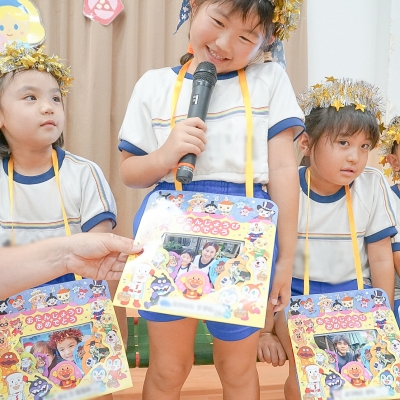 さらに、専門の先生を招いて「英語」の時間も設けています。英語で挨拶をしたり、英語の歌を歌ったり、遊びを取り入れながら外国の言葉に親しんでいます。園の先生だけでなく、地域のさまざまな人との交流を通して、話す力や聞く力、社会性も育まれます。園長先生は「年少さんでも“ありがとう”が言えるようになるなど、子どもたちの成長を日々感じています。」と話していました。
